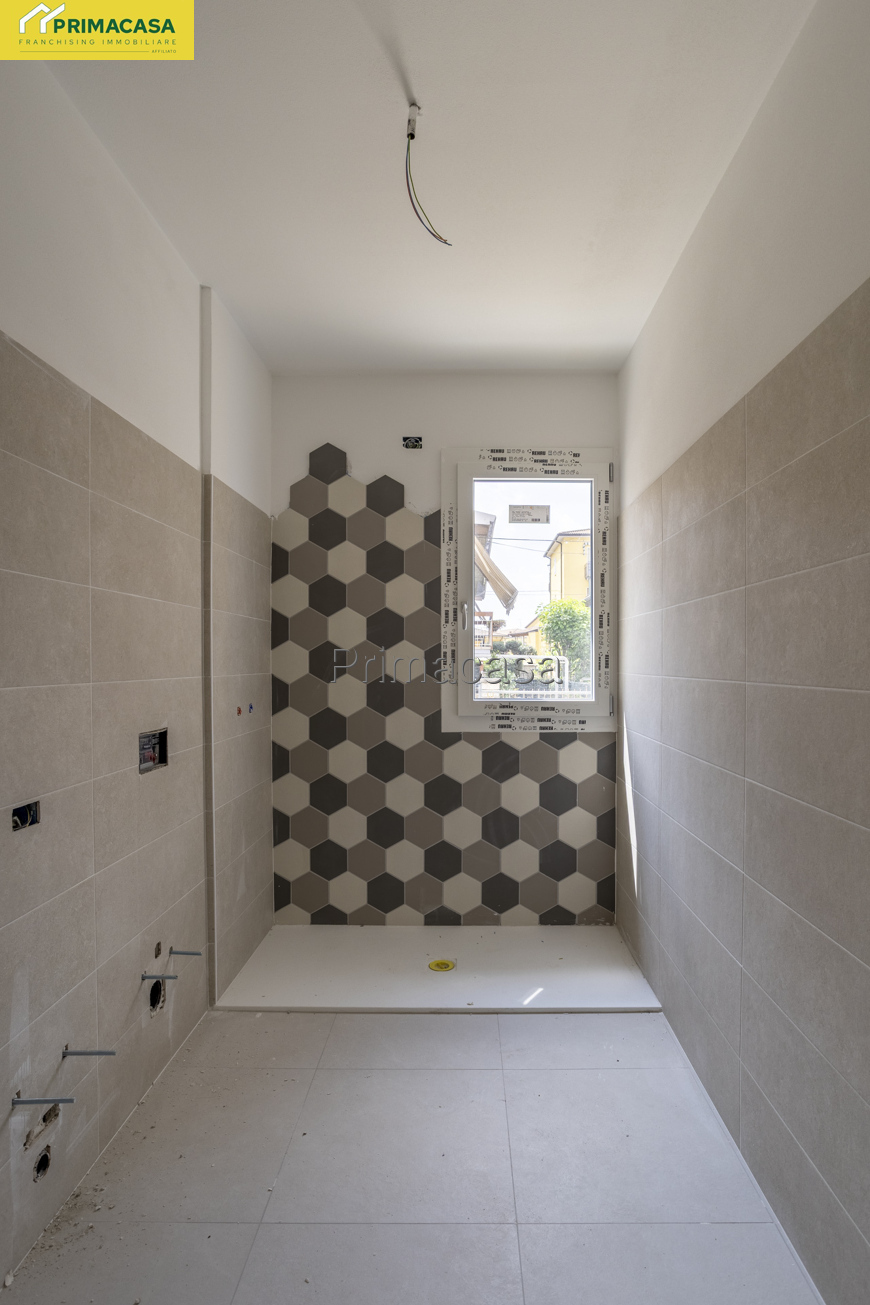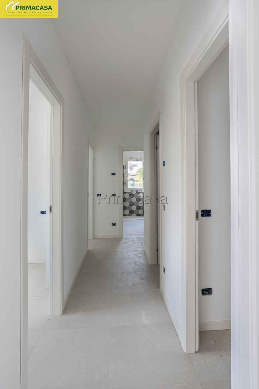 Proponiamo in palazzina di 14 unità abitative in zona centrale al quartiere in consegna a fine 2025 appartamento al primo piano composto di soggiorno con cucina a vista con ampio balcone, disimpegno, camera matrimoniale con balcone, camera singola con balcone, terza camera da letto anche questa singola, due bagni completi di cui il primo finestrato ed il secondo ad aspirazione forzata oltre ripostiglio. Completa la proprietà la cantina. garage a parte con possibilità di scelta. Caratteristiche dell'immobile: